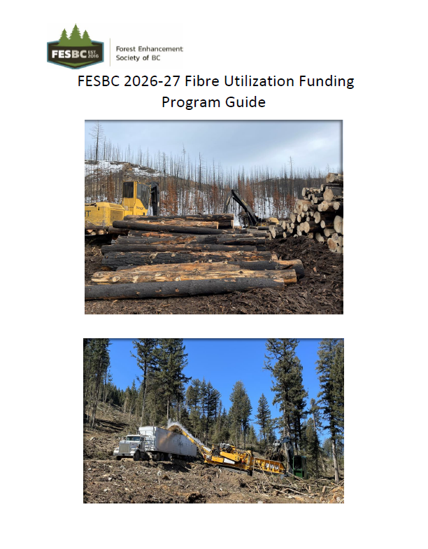 The Forest Enhancement Society of BC (FESBC) is accepting applications to fund projects that encourage diversity and innovation by the forest sector to utilize uneconomical residual fibre located on provincial crown land. FESBC is committed to fund projects that increase residual fibre utilization by non-lumber producing facilities, utilize fibre from fire and insect damaged stands and minimize emissions associated with open burning.